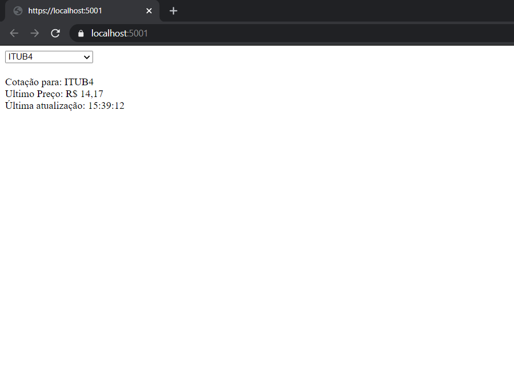 Com isso, temos nossa aplicação pronta. Se tudo deu certo, devemos ter o seguinte resultado em tela, escolhendo "ITUB4":